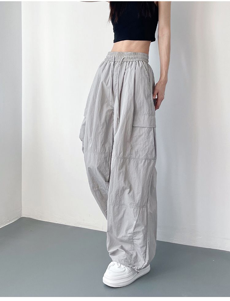 伸縮性のある幅広ウエストが快適な着心地を提供し、サイドポケットが機能性も兼ね備えています。