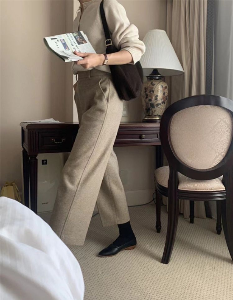 なめらかで上質なウール素材は肌触りが良く、秋冬の装いに温かみのある品格をプラスします。