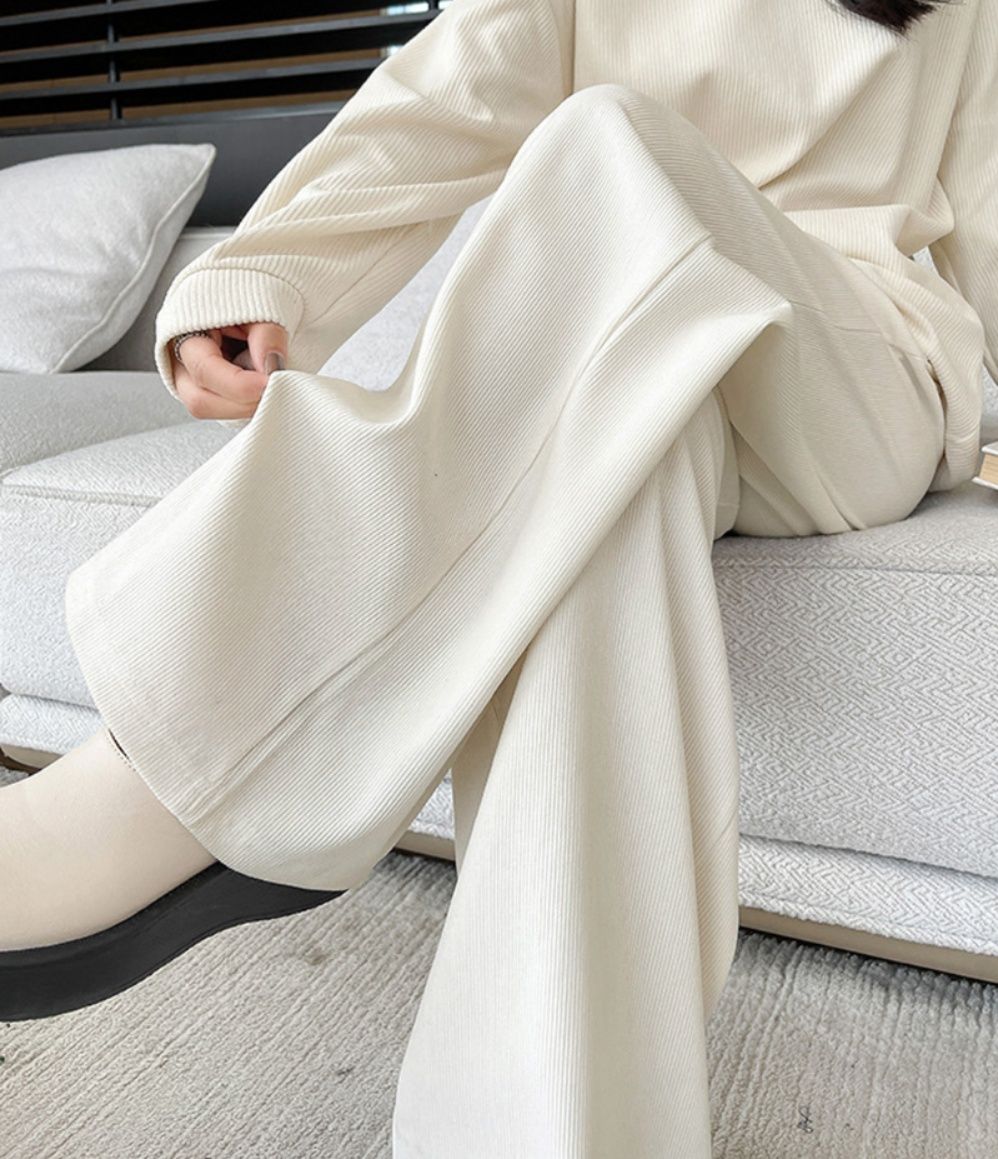 程良いワイドシルエットで長いシーズン着用できる、スウェット風のレディースワイドパンツ。