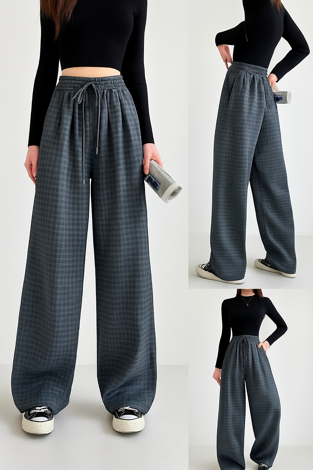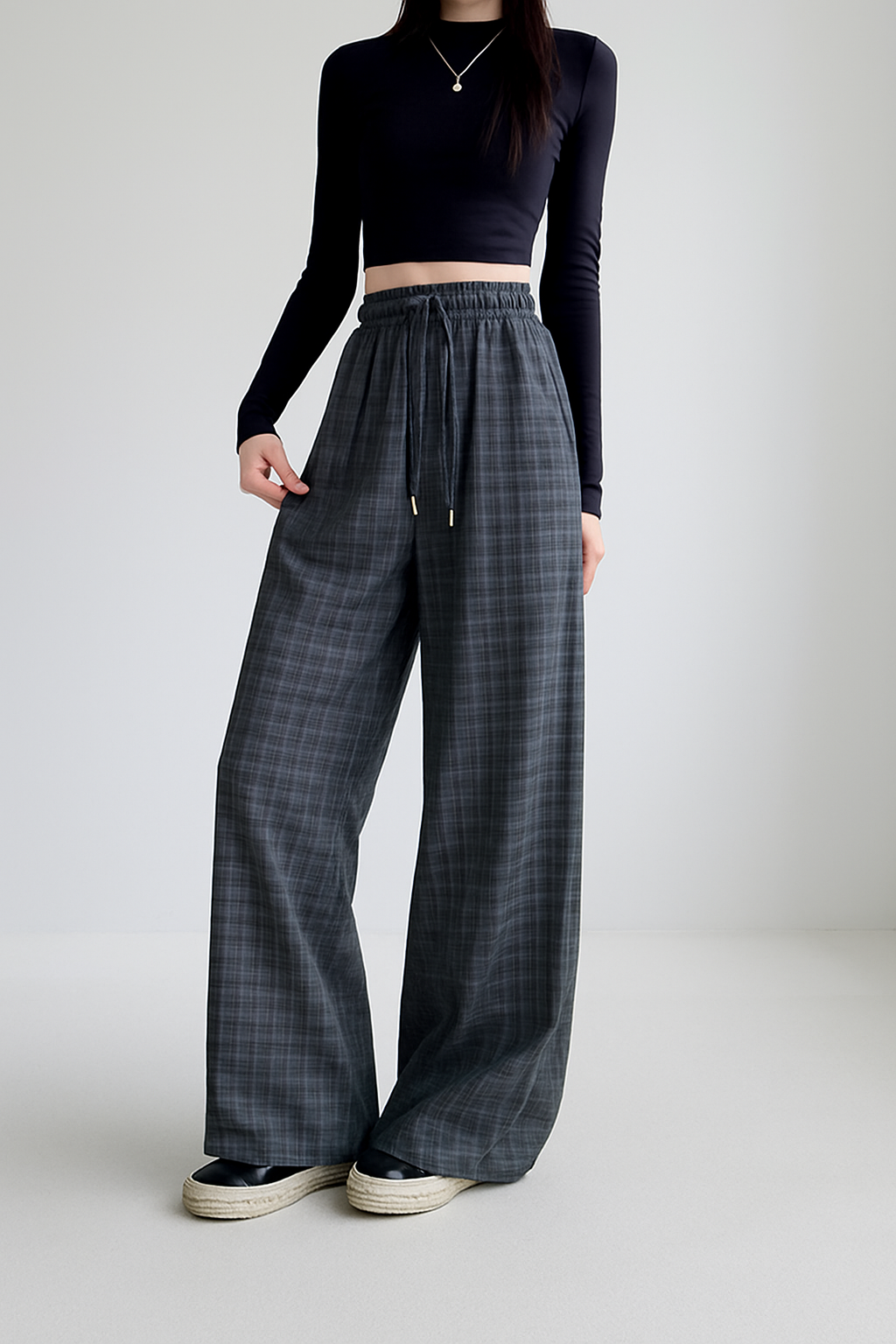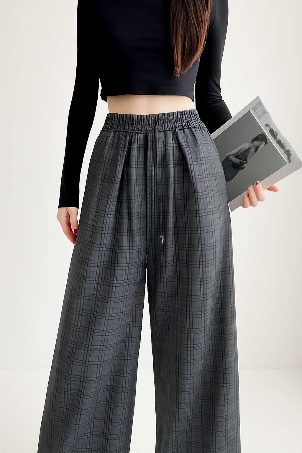 上品なチェック柄とゆったりとしたワイドシルエットで、