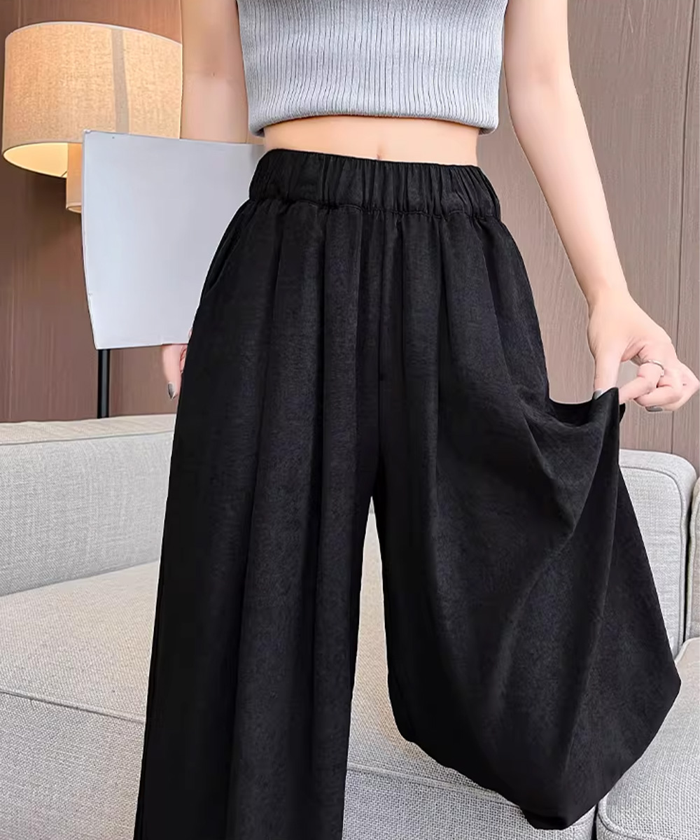 ロングパンツ 楽ちんパンツ 薄手 シワ感 美脚脚長 ゆったり 着やせ ベーシック おしゃれ お出かけ オフィス 無地パンツ 春夏 カジュアルボトムス 体型カバー シワ感のある素材を使用したワイドパンツです。 落ち感のあるシルエットが、コーディネートに程よい抜け感をプラスします。 ウエストはリラックス感のある仕様で、締め付け感なく着用可能です。 トップスを選ばず、カジュアルからきれいめまで幅広いスタイリングに対応します。 素材:ポリエステル100% カラー:ブラック/アイボリー/クリーム/ピンク/ブルーグレー サイズ:M/L/XL [M]着丈:約100cm 股下:約66cm ウエスト(ゴム仕様):約58-78cm ヒップ:約88cm もも周り:約54cm [L]着丈:約101cm 股下:約67cm ウエスト(ゴム仕様):約62-82cm ヒップ:約90cm もも周り:約57cm [XL]着丈:約102cm 股下:約68cm ウエスト(ゴム仕様):約66-86cm ヒップ:約92cm もも周り:約60cm 裏地:なし 伸縮性:なし 透け感:アイボリーのみややあり