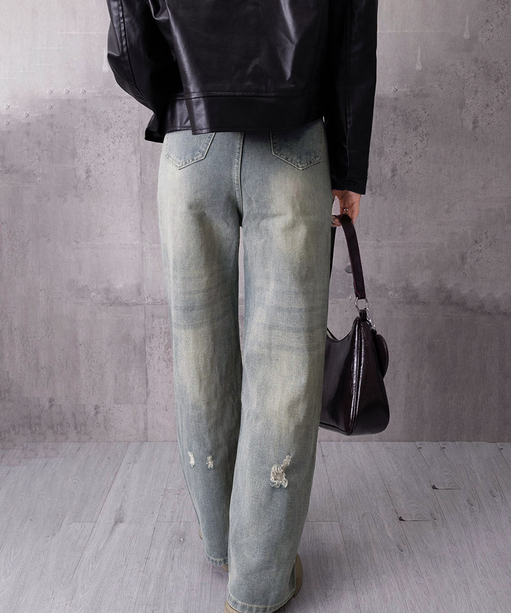 ヴィンテージ風のダメージ加工とウォッシュ加工で、こなれた印象に仕上がります。
