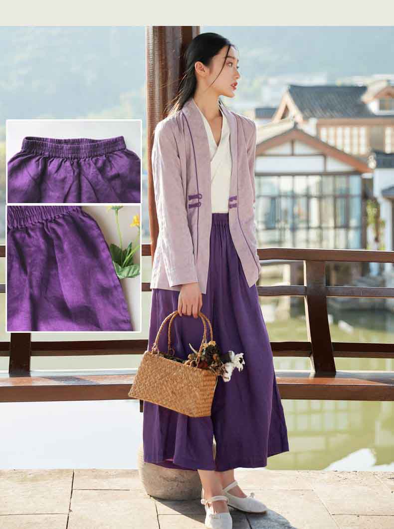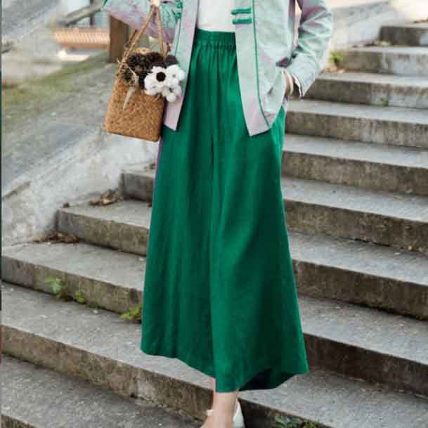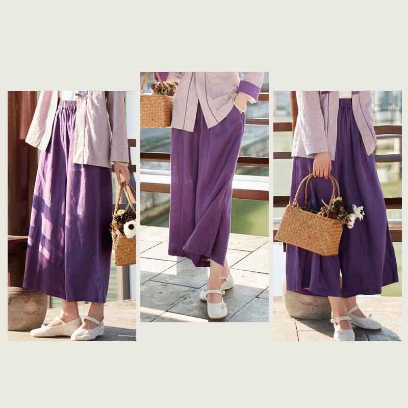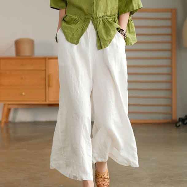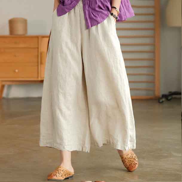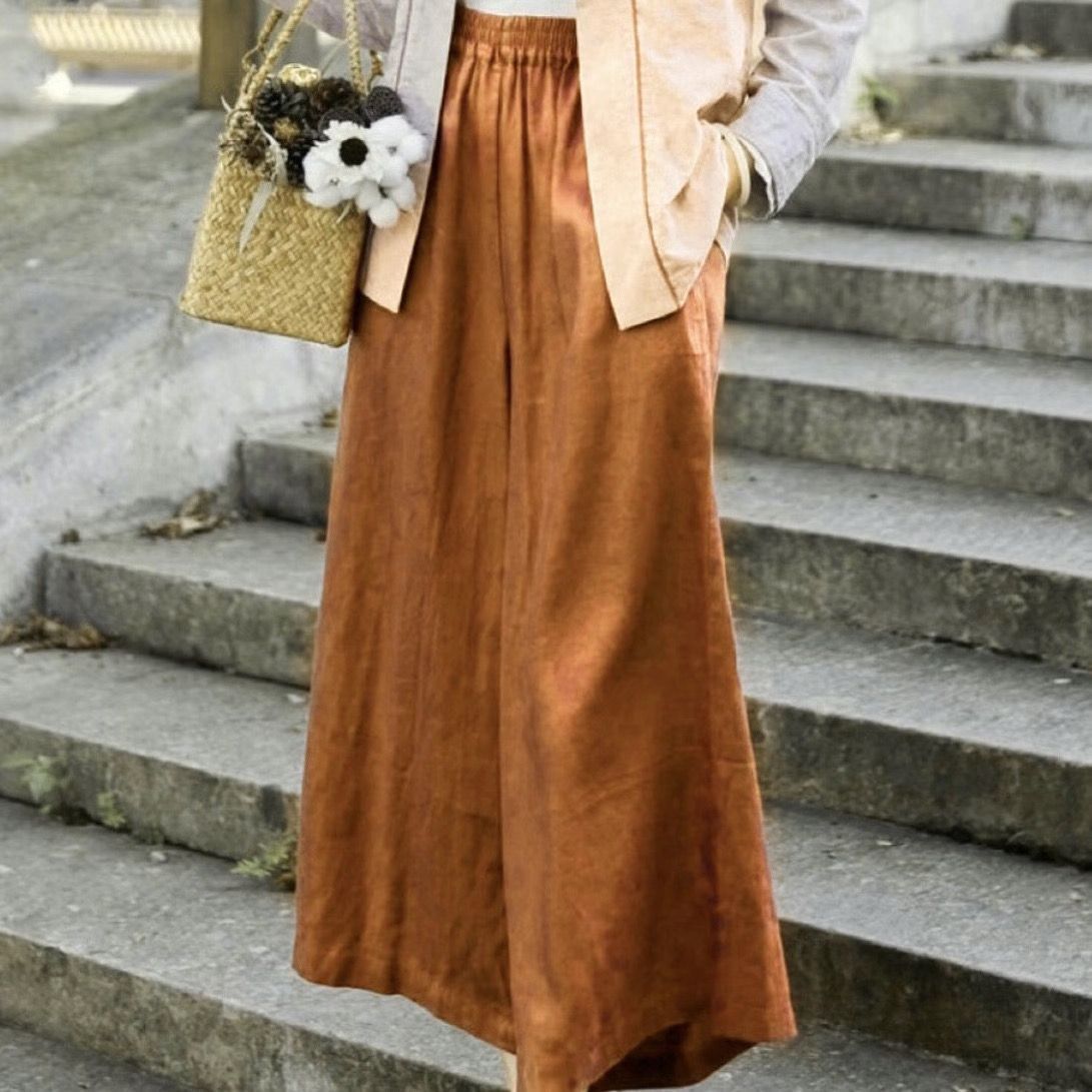 上質な綿麻素材を使用したレディースワイドパンツです。