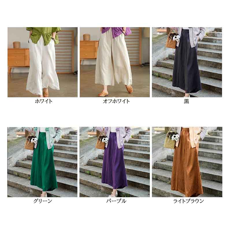 ■コメント ・足首が見える8分丈で程よい抜け感漂うワイドパンツです。 ・綿麻素材でさらさらとした肌ざわり。 ・足のラインをひろわず体系カバーできます。 ・ウエストゴムで動きやすくストレスフリー。 ・Tシャツや、スウェット、夏は少し短めのトップスを合わせてもオシャレに着こなせます。 普通(M) 総丈90 ウエスト60-90(OK) ビッグ(2XL) 総丈93 ウエスト70-100 ※平置き採寸の為、1-3cmの誤差がある場合があります。予めご了承下さいませ。 ■カラー 画像に記載 ■裏地 なし ■生地の厚さ 普通 ■透け感 なし ■素材 麻80%、綿20% ■重量 300g